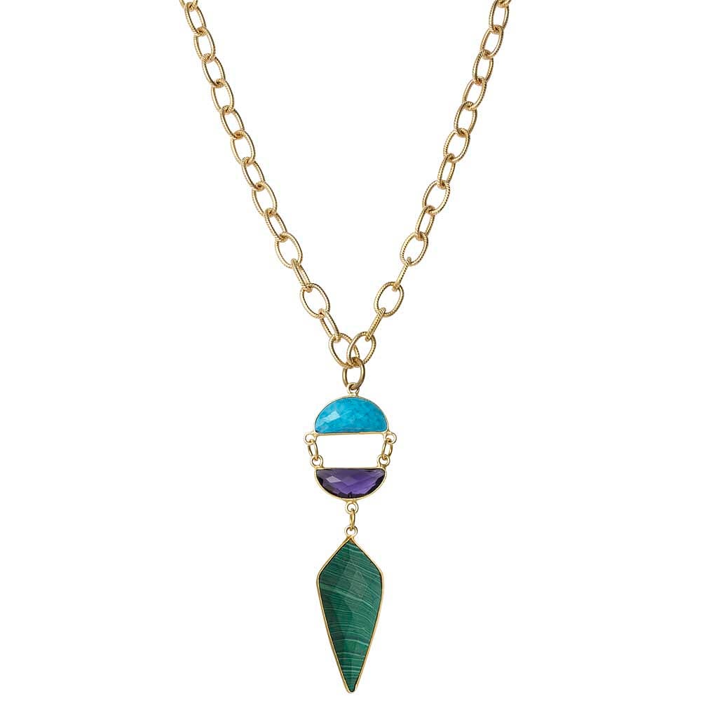 TURQUOISE, AMETHYST & MALACHITE ARROWHEAD Y-NECKLACE