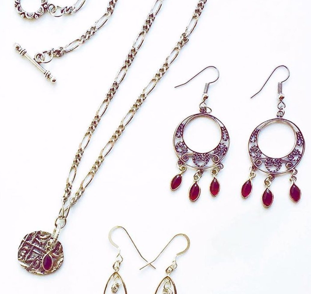 GARNET & ANTIQUE COIN NECKLACE